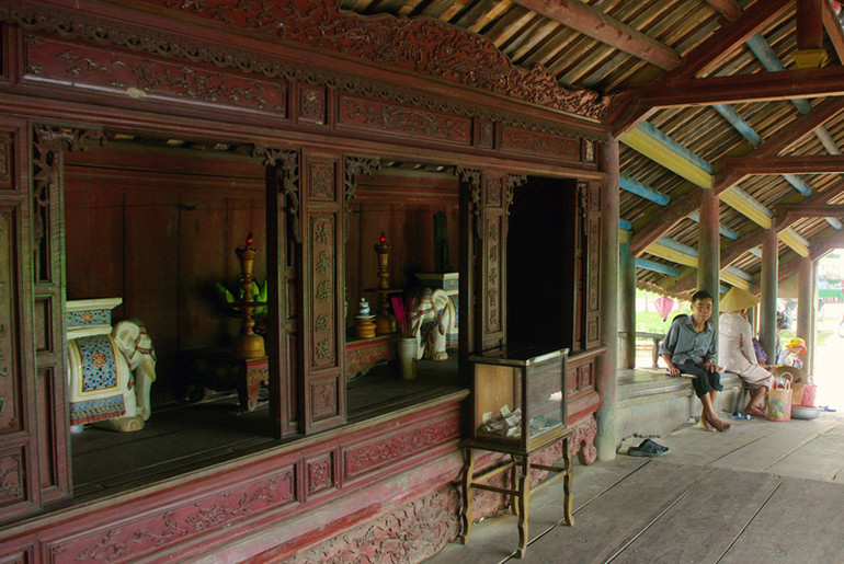 Cầu có bảy gian, chính giữa là gian thờ bà Trần Thị Đạo, người đã có công xây dựng cây cầu này. Tương truyền bà là con cháu dòng họ Trần có chồng làm quan dưới triều vua Lê Hiển Tông, để cầu tự bà đã dùng tiền của mình để làm phúc cho dân làng, để việc đi lại được thuận tiện và là nơi cho lữ khách cùng người tha phương tạm dừng chân.