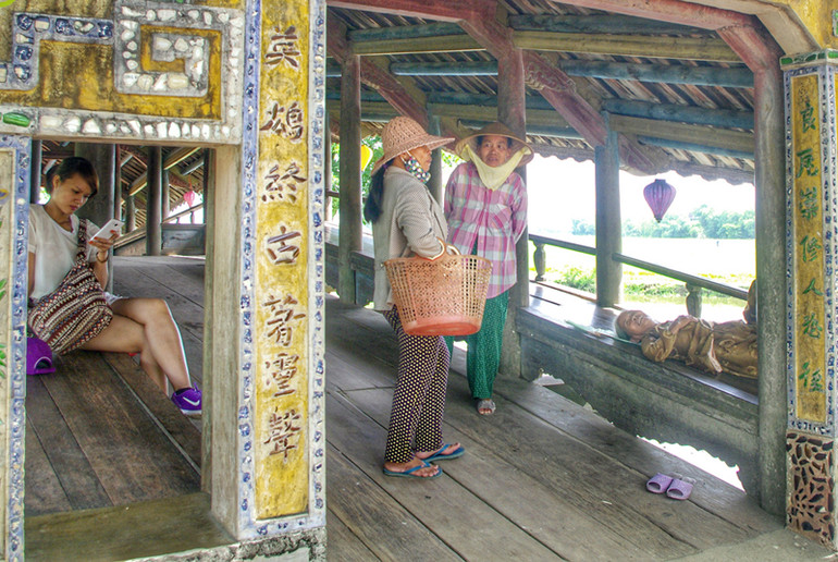 Bảy gian như bảy gian phòng của ngôi nhà, với mỗi gian có hai dãy bục gỗ và lan can để ngồi tựa lưng. Đây cũng chính là điểm nhấn đặc biệt nhất của cầu ngói Thanh Toàn, là chiếc ghế dừng chân, thậm chí là chiếc phản cho người dân, du khách nằm nghỉ ngơi.