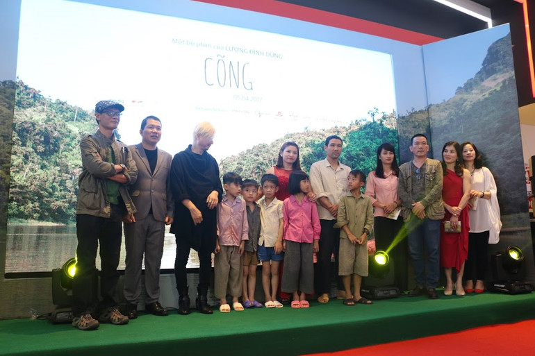 Đoàn phim "Cha cõng con" tại lễ ra mắt phim diễn ra tối 30-3.