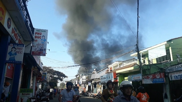 Cảnh sát PCCC đã cử hàng chục cán bộ và nhiều phương tiện đến chữa cháy.
