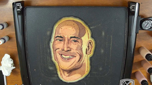 Không chỉ là một đầu bếp làm bánh kếp tài năng trên thế giới, anh Dan Drake còn thể hiện tư chất nghệ sĩ khi biến mỗi chiếc bánh thành một bức tranh chân dung. Drake đang là đầu bếp tại nhà hàng Courtesy Diner ở TP St. Louis (Mỹ). Tại đây, anh đã làm ra những chiếc bánh mang chân dung nhiều người nổi tiếng như Katy Perry, Dwayne Johnson (trong ảnh) hoặc các nhân vật hoạt hình.