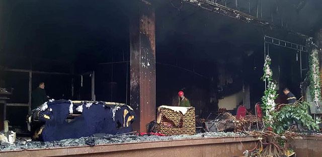 * Vụ cháy xảy ra vào khoảng 11 giờ ngày 18-3. Theo một số nhân chứng, ngọn lửa ban đầu được xác định bùng phát từ tầng 1 rồi lan lên cao và bao trùm toàn bộ khu vực phía sau khách sạn.