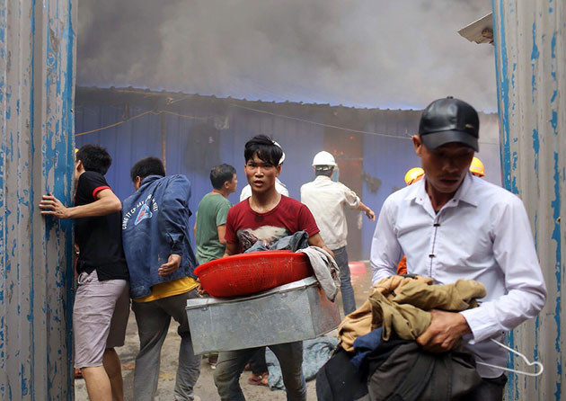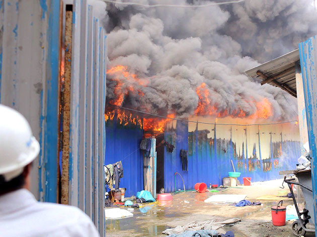 Theo các công nhân tại đây cho biết, khi họ đang ở quanh khu vực lán thì có mùi khét, rất nhanh sau đó phát hiện lửa bùng lên dữ dội. Sau khi đám cháy bùng phát, hàng trăm người dân và công nhân hoảng loạn chạy ra khỏi nhà, sơ tán các vật dễ cháy và đồ đạc.