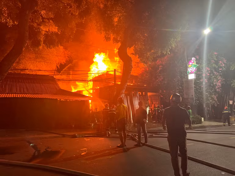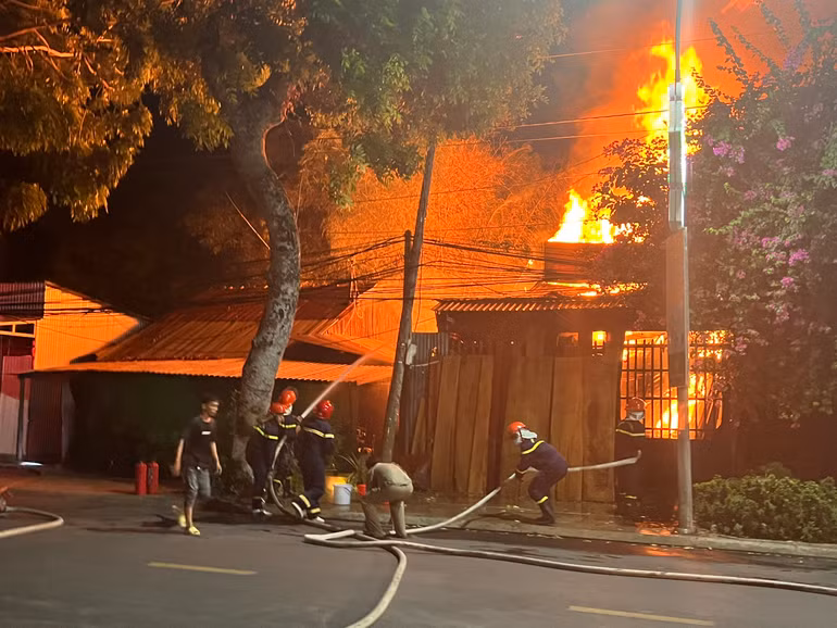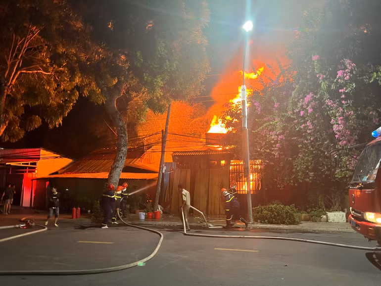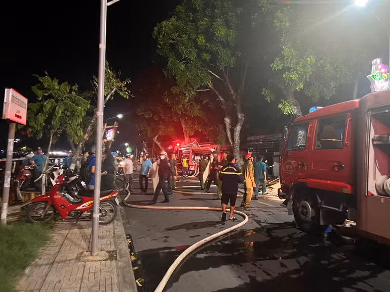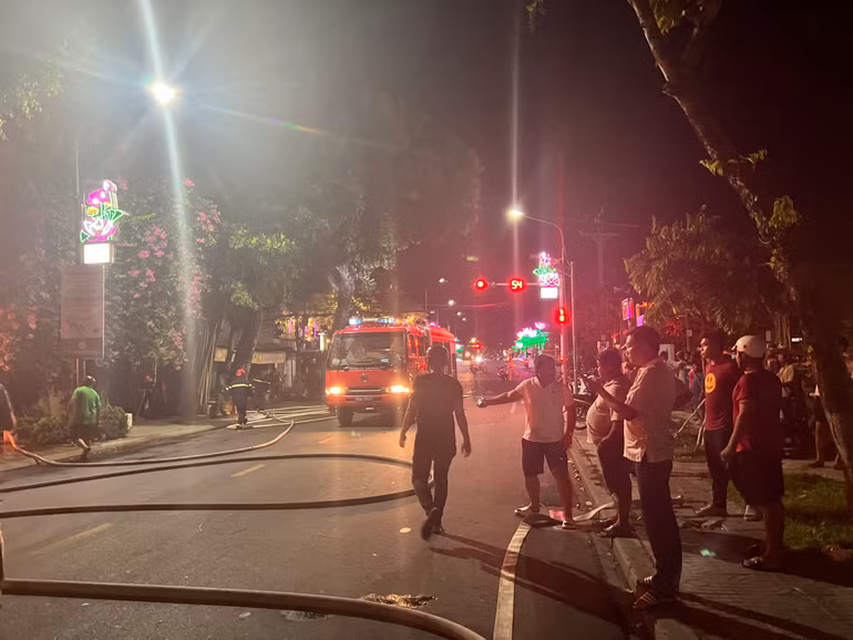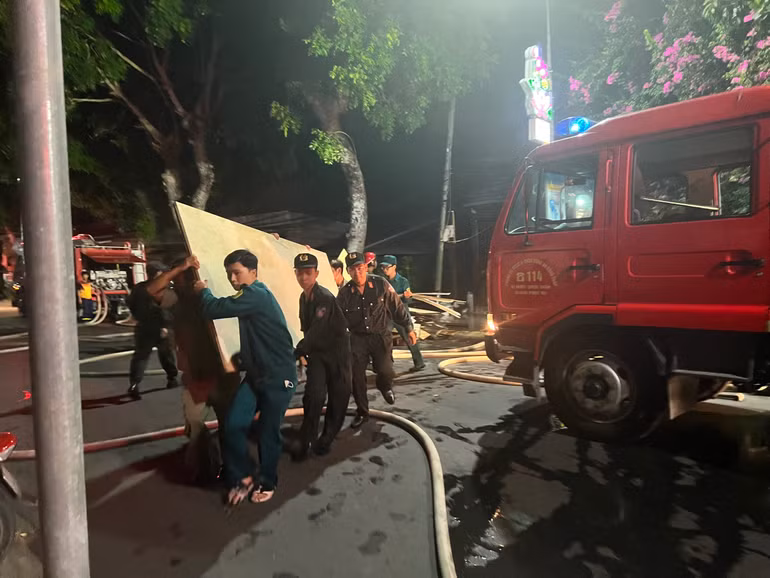 Ngay sau xảy ra cháy, lực lượng chữa cháy đã có mặt tại hiện trường, huy động nhiều phương tiện cùng người dân tham gia chữa cháy.