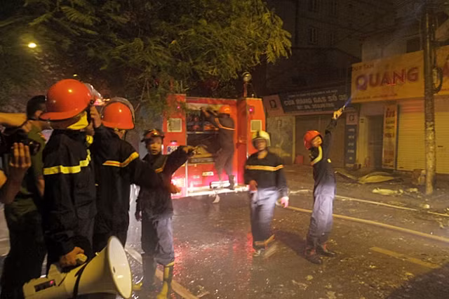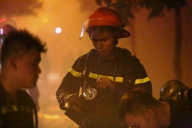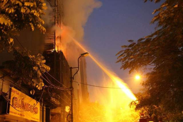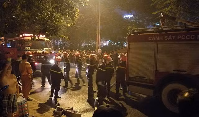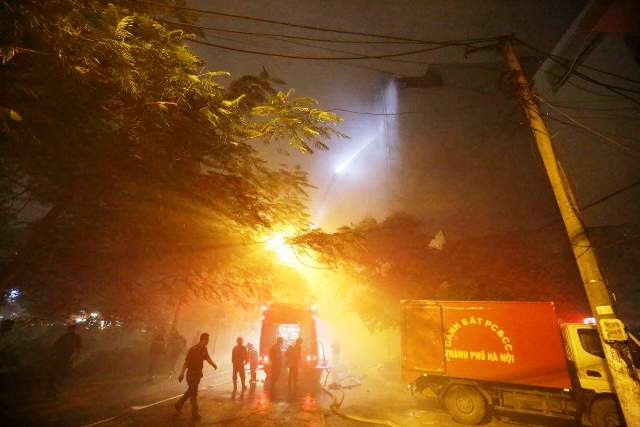 Đến 19 giờ, ngôi nhà vẫn đang bốc cháy dữ dội và liên tiếp phát ra những tiếng nổ lớn. Hàng trăm người dân hiếu kì tập trung hai bên đường theo dõi vụ việc. Cảnh sát khu vực đã tạo hàng rào cách ly hiện trường. Khoảng 20 xe chữa cháy lần lượt được huy động tới để dập lửa và chuẩn bị cho máy bơm trực tiếp nước từ sông Tô Lịch lên để xả vào tòa nhà.