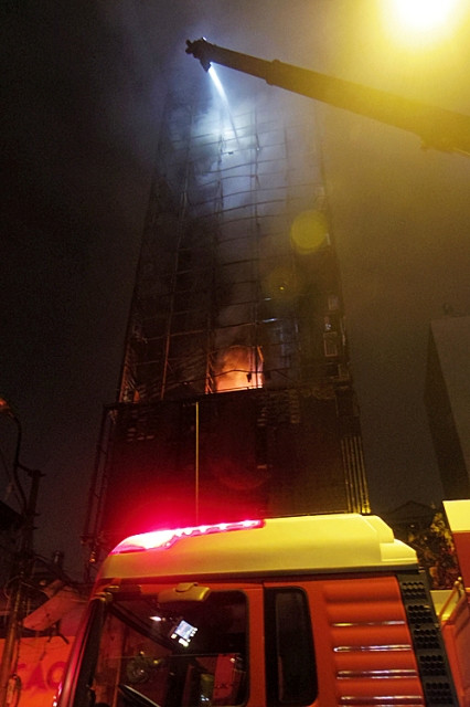 Nhận định ban đầu cho hay, do thiết kế tòa nhà là nhà ống, đám cháy quá lớn, cảnh sát đang dùng các biện pháp làm mát các tầng dưới, tránh đổ sập.