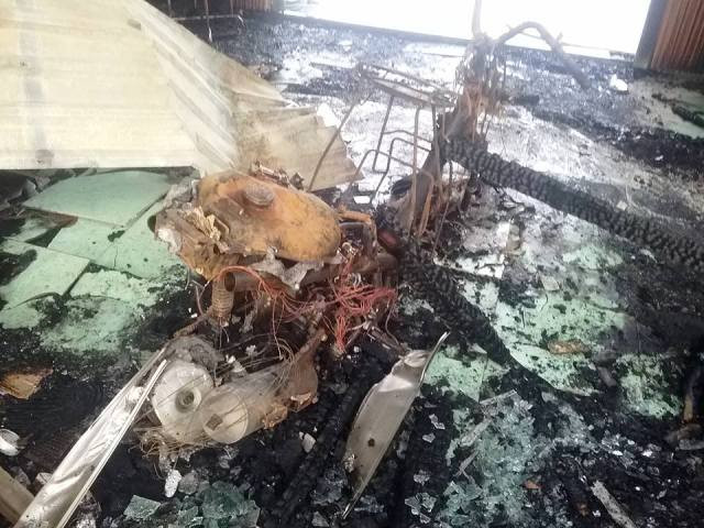 Khi ngọn lửa được dập tắt thì cả hai nhà vách gỗ, lợp tôn cùng toàn bộ tài sản, vật dụng bên trong đã bị thiêu rụi và sập đổ hoàn toàn.