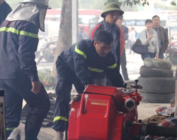 Theo quan sát của phóng viên tại hiện trường vào lúc 12 giờ 15 phút, đám cháy có dấu hiệu bùng phát lớn kèm theo nhiều tiếng nổ phát ra. Quanh khu vực cháy có rất nhiều nhà xưởng sửa chữa ô-tô. Lực lượng chức năng cùng người dân khẩn trương di dời tài sản ra xa khỏi khu vực đám cháy.