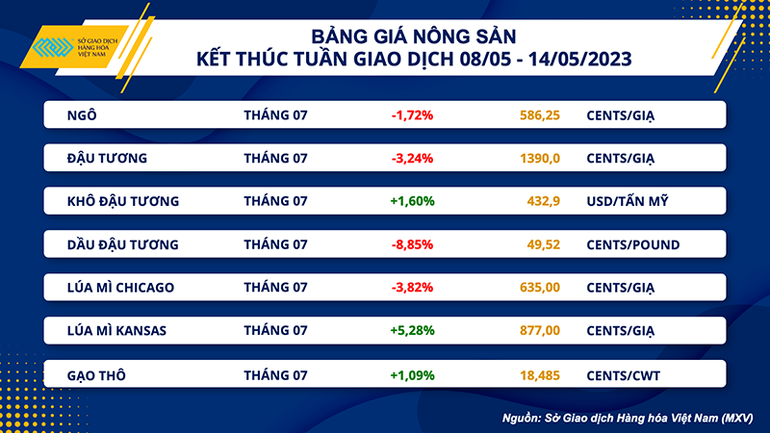 Kết thúc tuần giao dịch 8/5-14/5, với 4 trên 5 phiên giảm mạnh, giá đậu tương đánh mất mức hỗ trợ tâm lý 1400 cents, xuống 1.390 cents/giạ, thấp nhất kể từ tháng 10/2022.