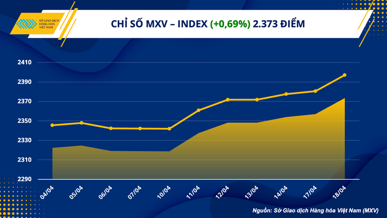 Kết thúc phiên giao dịch ngày 18/4, sắc xanh tiếp tục bao trùm lên bảng giá các mặt hàng nhóm nguyên liệu công nghiệp, nhờ hỗ trợ từ sự suy yếu của Dollar Index.