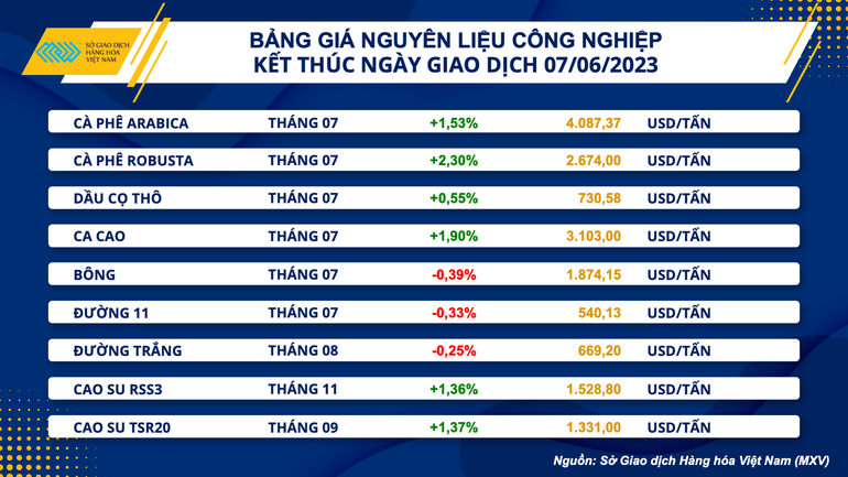 Kết thúc phiên giao dịch ngày 7/6, giá cà-phê Robusta dẫn đầu đà khởi sắc của nhóm nguyên liệu công nghiệp với mức tăng 2,30% so tham chiếu; đánh dấu phiên tăng giá thứ 3 liên tiếp của mặt hàng này trong bối cảnh lo ngại khan hiếm nguồn cung đang bao trùm lên thị trường.