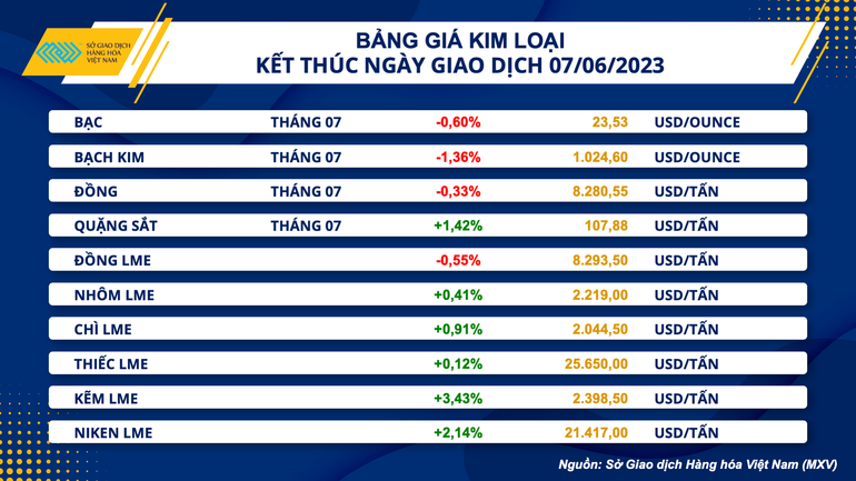Đối với nhóm kim loại cơ bản, giá đồng COMEX đứt chuỗi tăng 3 phiên liên tiếp, giảm 0,33%. Mặc dù nhập khẩu đồng của Trung Quốc trong tháng 5 tăng 9,03% so tháng 4, cho thấy nhu cầu cải thiện, tuy nhiên vẫn giảm 4,8% so cùng kỳ năm ngoái.