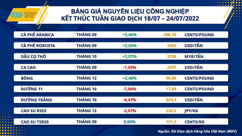 Đối với mặt hàng cà-phê, giá tăng sau 2 tuần giảm liên tiếp trước đó. Lo ngại về nguồn cung ngày càng thu hẹp đang là yếu tố chính thúc đẩy giá cà phê tăng trong tuần qua. Cụ thể, tồn kho đạt chuẩn của Arabica tính đến hết tuần trước đã giảm xuống mức 705.727 bao (60kg), thấp nhất trong hơn 22 năm qua.