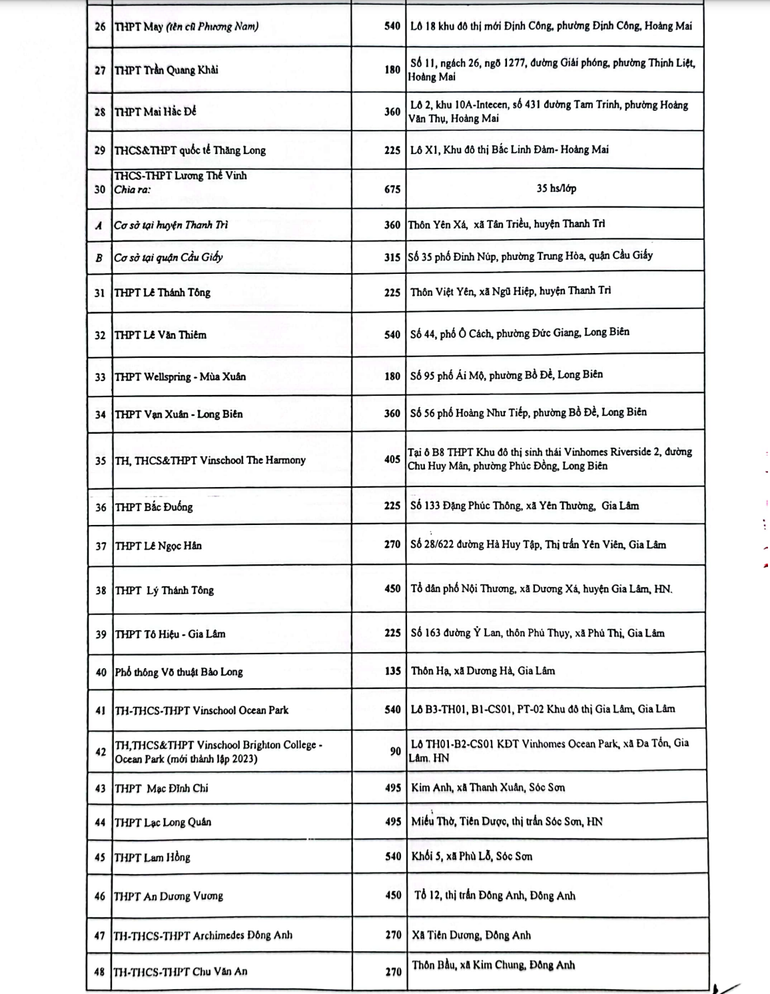 Ngày 17/4, Sở Giáo dục và Đào tạo Hà Nội công bố chỉ tiêu tuyển sinh vào lớp 10 năm học 2024-2025 của các trường THPT tư thục.