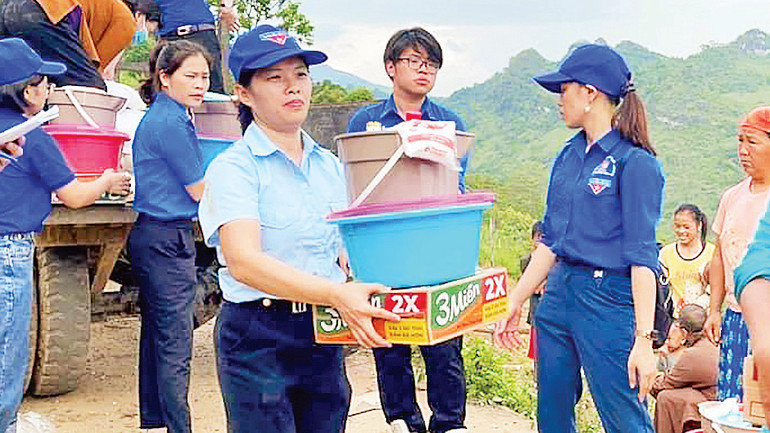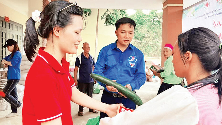 Tại đây, đoàn đã thăm, trao tặng 360 suất quà cho 360 gia đình có hoàn cảnh khó khăn trên địa bàn xã Phúc Lộc và 5.000 cuốn vở cho Huyện đoàn Ba Bể, tổng trị giá các phần quà là gần 200 triệu đồng. (Ảnh Mai Anh)