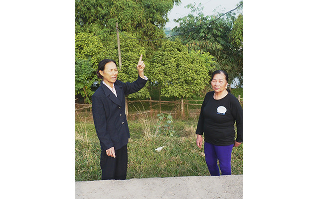 Bà Bắc (bên trái), nữ tự vệ phường Giang Biên mô tả cảnh máy bay Mỹ gầm rú trên bầu trời 45 năm trước.