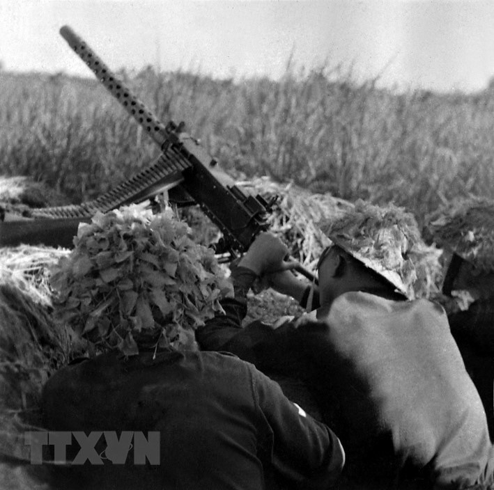 Trận Ấp Bắc (xã Tân Phú, huyện Cai Lậy, tỉnh Mỹ Tho; nay thuộc thị xã Cai Lậy, tỉnh Tiền Giang) diễn ra trong 20 tiếng đồng hồ ngày 2/1/1963 trong sự tương quan lực lượng hết sức chênh lệch, địch áp đảo ta về cả lực lượng và vũ khí, trang bị, có ưu thế cả trên không, trên bộ, trên sông. Trong ảnh: Khẩu đại liên lịch sử đã hạ 8 máy bay Mỹ trong trận Ấp Bắc (1/1963). (Ảnh: TTXGP)