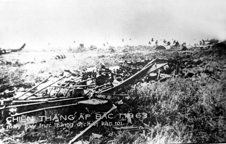 Thắng lợi này là biểu tượng cho sức mạnh chiến tranh nhân dân Việt Nam, đánh dấu sự phát triển thế và lực của cuộc chiến tranh cách mạng, cổ vũ mạnh mẽ quân và dân miền nam đẩy mạnh phong trào “thi đua Ấp Bắc, giết giặc lập công.” Trong ảnh: Máy bay và trận địa của địch bị Quân giải phóng tiêu diệt trong Chiến thắng Ấp Bắc (1/1963). (Ảnh: Tư liệu TTXVN)