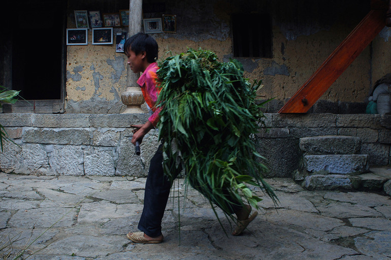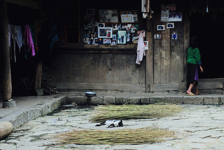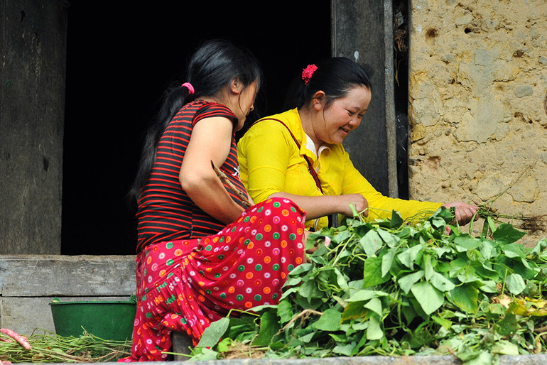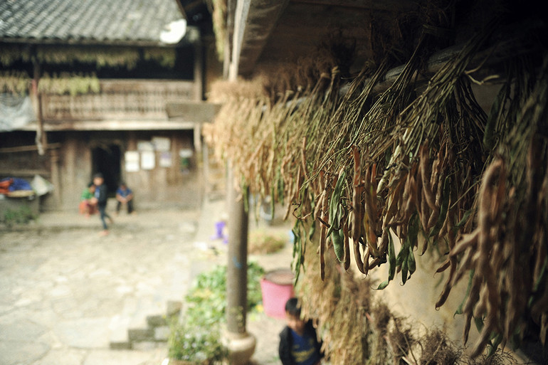Những người phụ nữ sau một ngày lên nương rẫy, cuối giờ chiều lại ngồi bên bậc thềm cùng nhau tuốt đậu tương, sau đó buộc thành từng chùm phơi kín trên giàn, lan can, ban công gỗ...