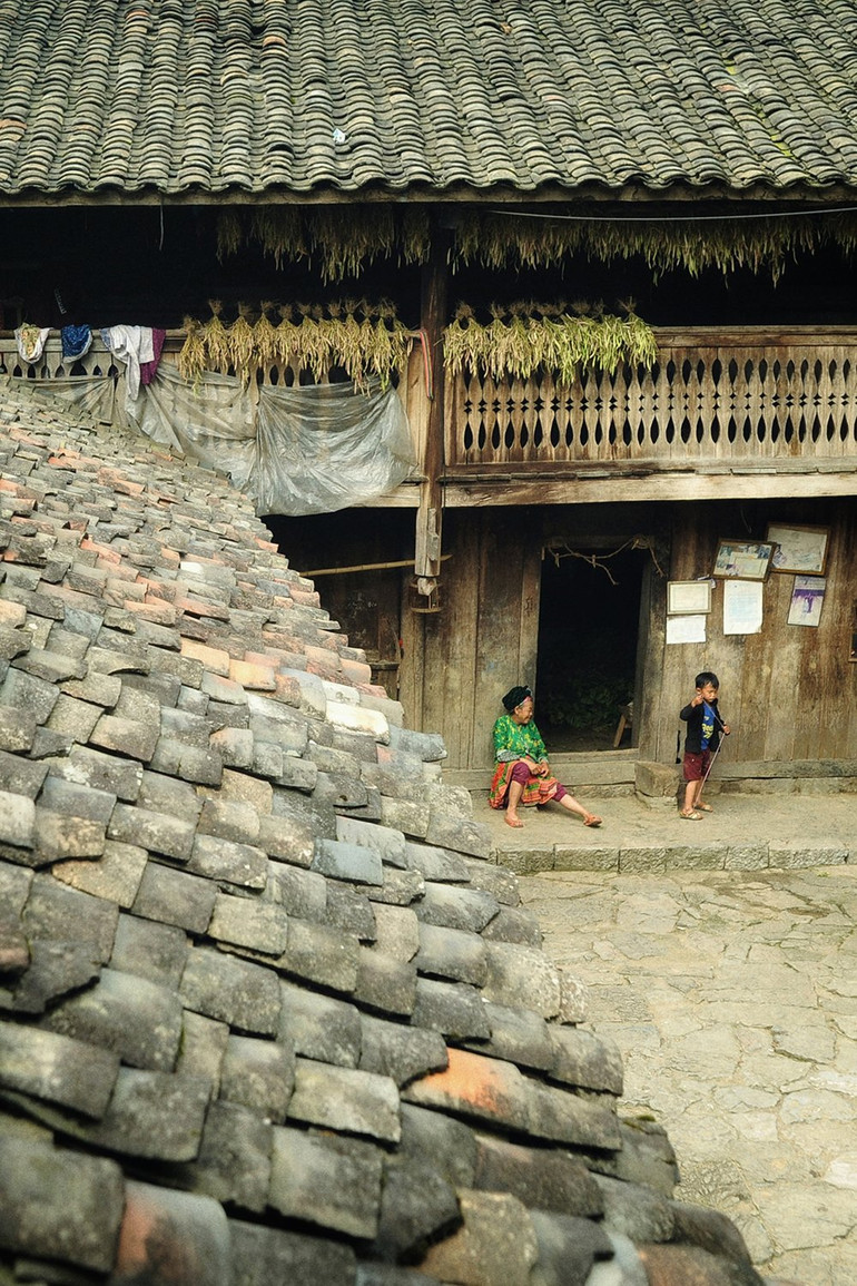 Những vị khách hiếm hoi của mùa hạ, bên tường rào đá, dưới tán đào của ngôi nhà "điện ảnh". Họ thật may mắn vì có thể đến đây vào mùa không có tác động của du lịch, có thể ngắm nhìn và cảm nhận chân thực nhất về cuộc sống trăm năm vẫn hiện hữu nơi đây, về cái hồn và con người thân thiện của cao nguyên đá.