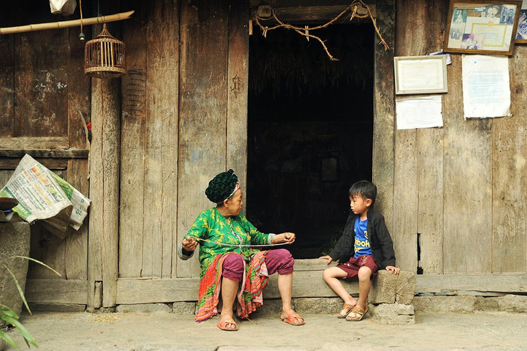 Thời gian như ngưng đọng nơi bậc thềm của hai bà cháu, như là lịch sử ngôi nhà hiển hiện trở lại ngay trước mắt.
