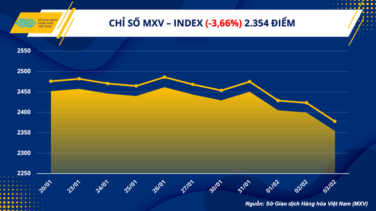 Kết thúc tuần giao dịch ngày 30/1-5/2, toàn bộ 5 trên tổng số 5 mặt hàng trong nhóm năng lượng đồng loạt đóng cửa trong sắc đỏ. Khí tự nhiên dẫn đầu đà suy yếu với mức giảm hơn 15% xuống còn 2,41 USD/triệu đơn vị nhiệt Anh. Nguồn cung dồi dào có thể sẽ được tiếp tục bổ sung khi Freeport LNG ở Texas, một nhà máy khí đốt tự nhiên hóa lỏng đã đóng cửa do một vụ nổ vào năm ngoái của Mỹ, đang chuẩn bị hoạt động trở lại. Động thái này báo hiệu sẽ có nhiều lô hàng nhiên liệu hơn vào cuối quý này, trong khi nhu cầu chưa có sự gia tăng đáng kể và từ đó, gây sức ép tới giá khí.