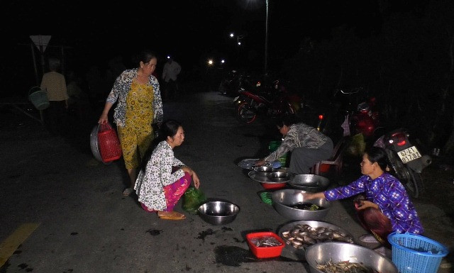 Chị Duyên, 36 tuổi, 10 năm sống bằng nghề mua bán cá đồng ở “chợ ma” này cho hay, có hơn chục mối hàng từ các ngư dân đặt dớn, lú trên đồng. Cứ độ gần 4 giờ sáng là xuồng ghe tấp bến, mang cá lên cân tấp nập. Trong màn đêm giá lạnh, tiếng côn trùng kêu ri ri dù nhỏ nhưng cũng vang xa nghe thật buồn. Chốc chốc lại có tiếng xe gắn máy rền vang lên tấp vào chợ. Đó là những bạn hàng đi chợ mua cá như chị Duyên, tới chợ họ lặng lẽ ngồi chờ.