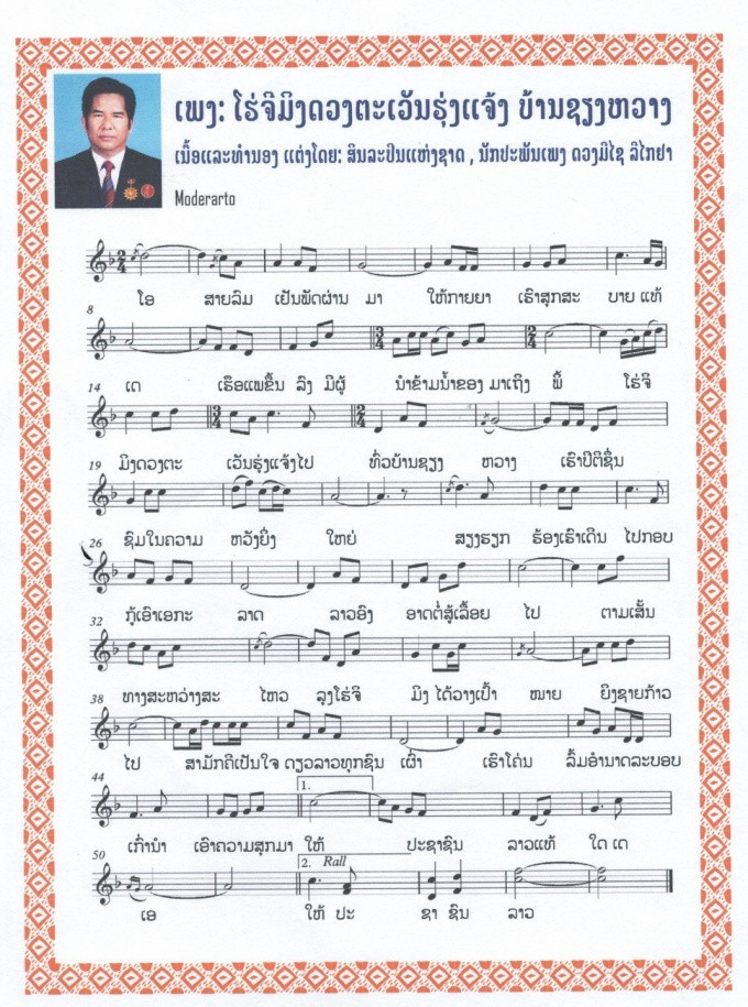 Bản gốc ca khúc “Mặt trời soi sáng bản Xiengvang” mà nghệ sĩ Douangmixay Likaya tặng Cơ quan thường trú Báo Nhân Dân tại Lào.