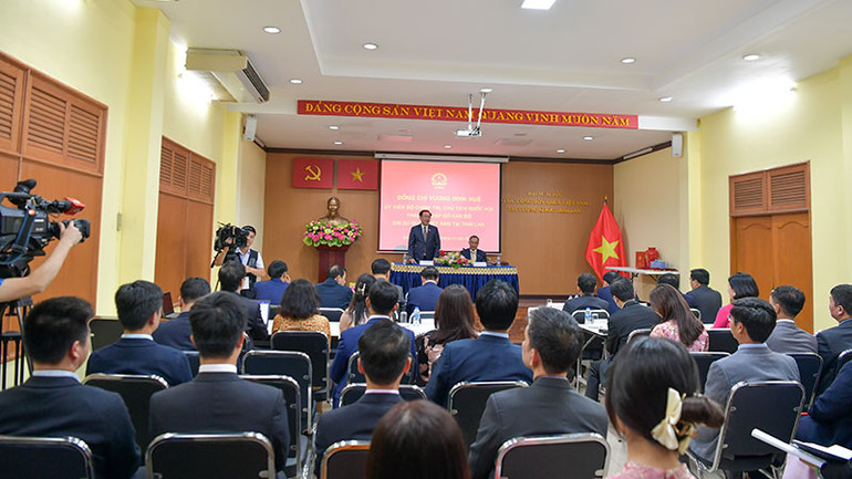 Thay mặt lãnh đạo Đảng, Nhà nước, Chủ tịch Quốc hội gửi lời thăm hỏi ân cần và tình cảm ấm áp tới các cán bộ, nhân viên của Đại sứ quán ta tại Thái Lan.