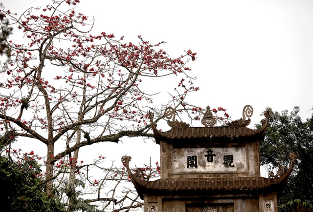 Hoa gạo như một điểm nhấn trong khung cảnh hữu tình của cảnh vật Hương Sơn.