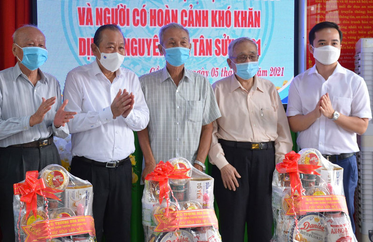 Tại đây, Phó Thủ tướng Trương Hòa Bình cùng các mạnh thường quân đã trao 500 phần quà trị giá gần 500 triệu đồng cho các Mẹ Việt Nam Anh hùng, Anh hùng lực lượng vũ trang, gia đình có công với cách mạng, người có hoàn cảnh khó khăn và các lực lượng nòng cốt đang thực hiện nhiệm vụ bảo đảm an ninh trật tự trong dịp Tết Nguyên đán.