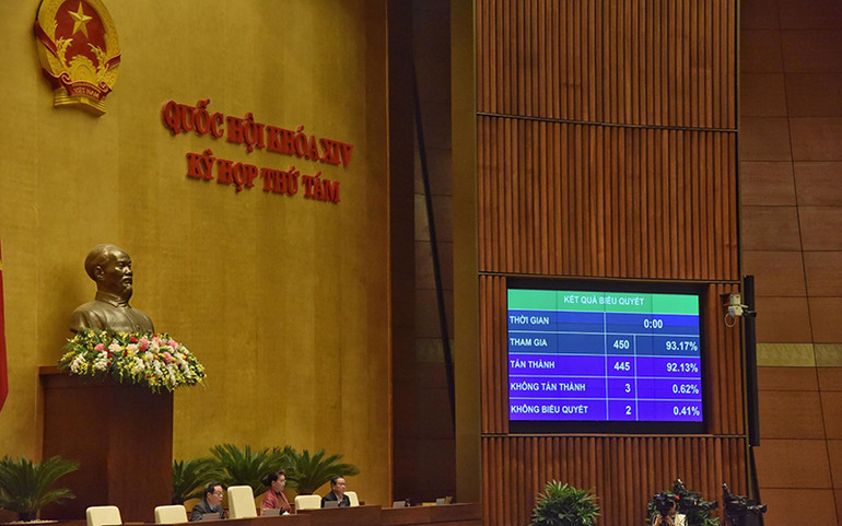 Kết quả biểu quyết Luật Chứng khoán (sửa đổi). (ẢNH: DUY LINH)