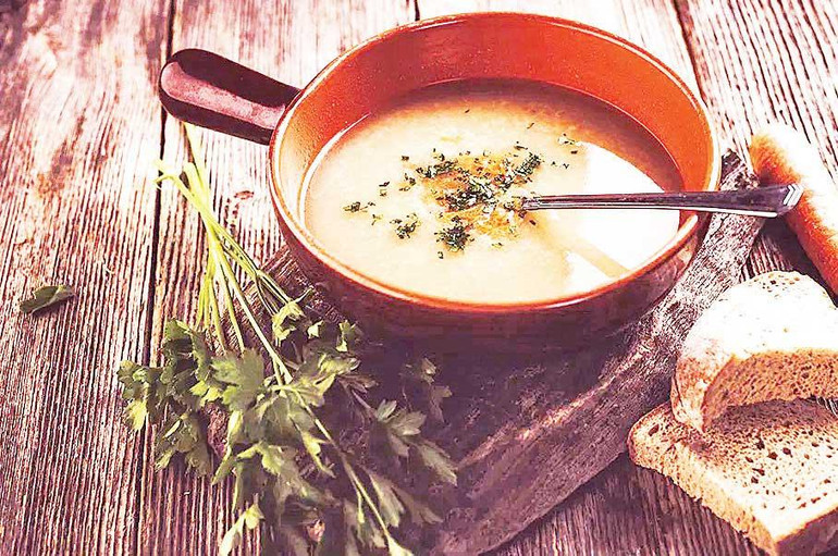 Một lúc sau, mùi súp đã thơm. Món súp của Kaja gọi là Prežganka, hương vị mộc mạc, dễ ăn, được nấu từ bột mì rang hòa nước và gia vị, khi bột quánh, sôi lục bục thì đập trứng gà, quấy đều là xong. Prežganka xuất xứ từ vùng nông thôn Trieste bên Ý, khi sang đến Slovenia, trở nên phổ biến. Chúng tôi ngồi quanh chiếc bàn nhỏ. Đôi trẻ nhâm nhi trà thảo mộc.