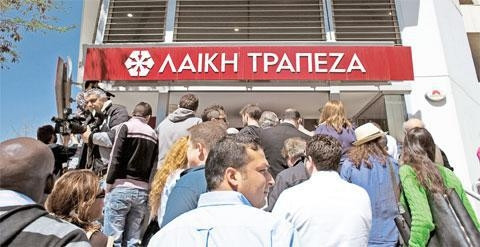 Dòng người đứng chờ Ngân hàng Laiki mở cửa để rút tiền sau 12 ngày đóng cửa (ngày 28-3-2013).