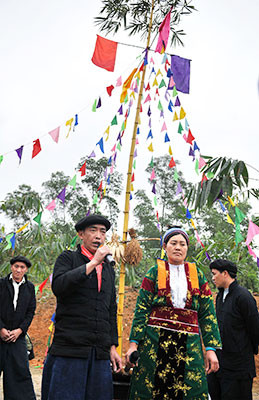 Trồng cây nêu ngày Tết tại Làng Văn hóa các dân tộc Việt Nam (Đồng Mô, Sơn Tây, Hà Nội). Ảnh: ĐĂNG KHOA