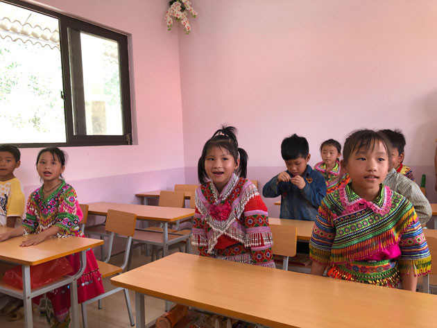 “Trường mới đẹp như thế này, tôi sẽ cho con đến học thôi”, Cáo Thị Chéo không phải là bà mẹ đông con theo học tại trường duy nhất. Một bà mẹ khác tay cầm giùm túi bánh kẹo quà tặng của con, miệng nói với con: “Có trường mới đẹp rồi, mai đi học chăm con nhé”… Có người mẹ trẻ cũng có bốn đứa con nhỏ đi học tại trường, mỗi bé học một lớp, cứ đứng ngoài cửa sổ chống tay lặng lẽ ngắm nhìn căn phòng còn thơm mùi sơn mới. Một ông bố khác, tay bế đứa con nhỏ còn chưa đến tuổi mẫu giáo, cười bẽn lẽn: "Trường đẹp quá, ít nữa đứa này lớn, tôi cũng cho đi học ở đây".