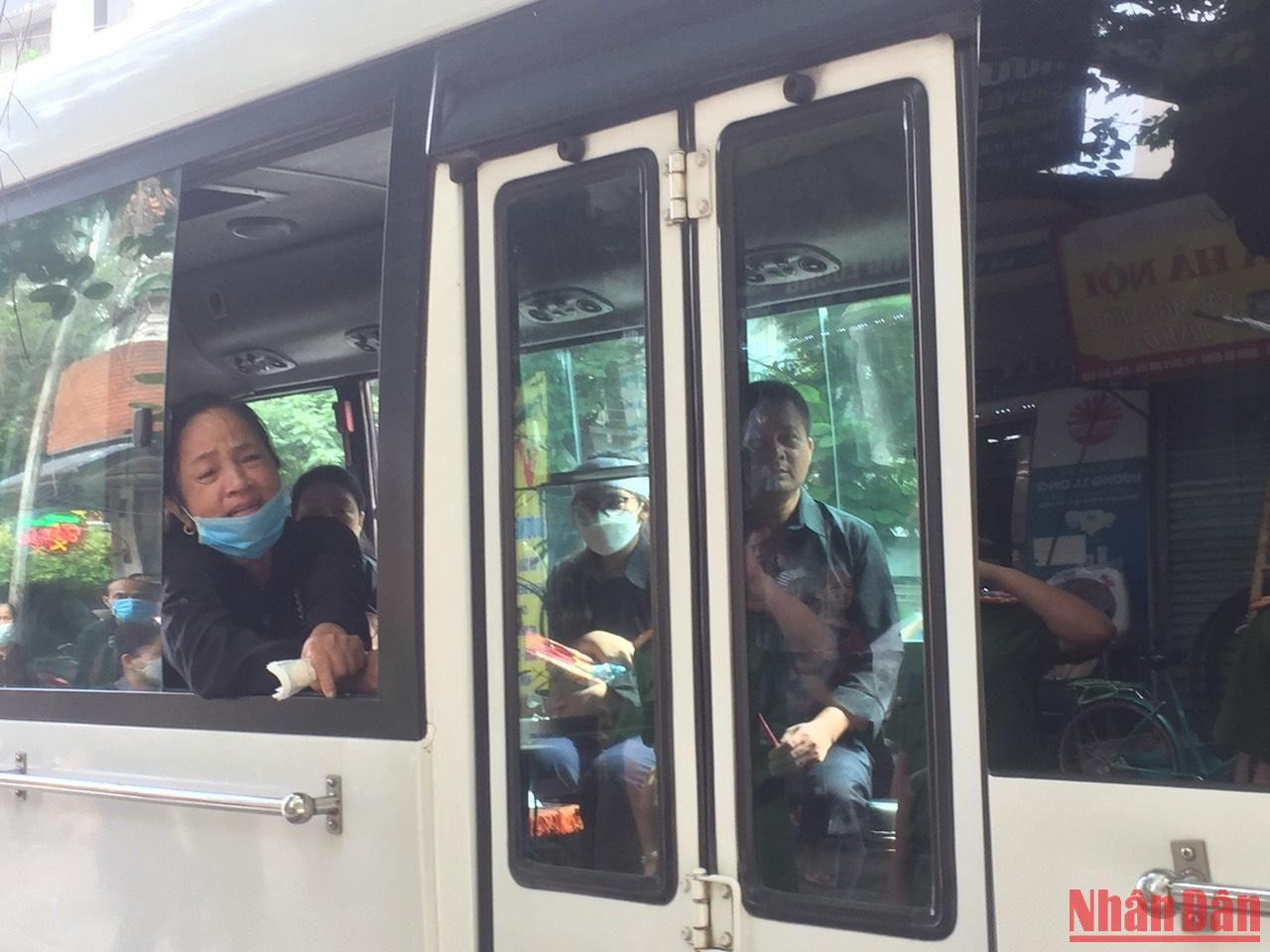 | Sau các nghi thức tại Nhà tang lễ, di hài của các anh được đưa lên xe để về “thăm nhà” lần cuối trong sự tiễn đưa của người thân, đồng chí, đồng nghiệp. |
