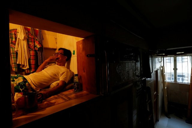 Simon Wong, 61 tuổi, sống trong một chiếc hộp kích thước 1,2 x 1,8 m tại Hồng Công (Trung Quốc). Loại hình “nhà quan tài” này trở nên phổ biến tại Hồng Công (Trung Quốc) trong bối cảnh giá nhà đất quá đắt đỏ.