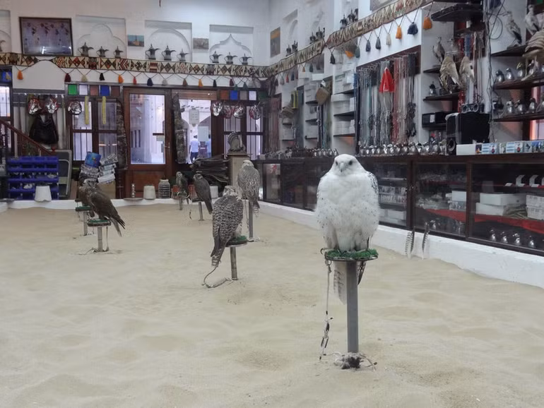 Khu bán và cung cấp các phụ kiện huấn luyện chim ưng trong khu chợ cổ Souq Waqif.
