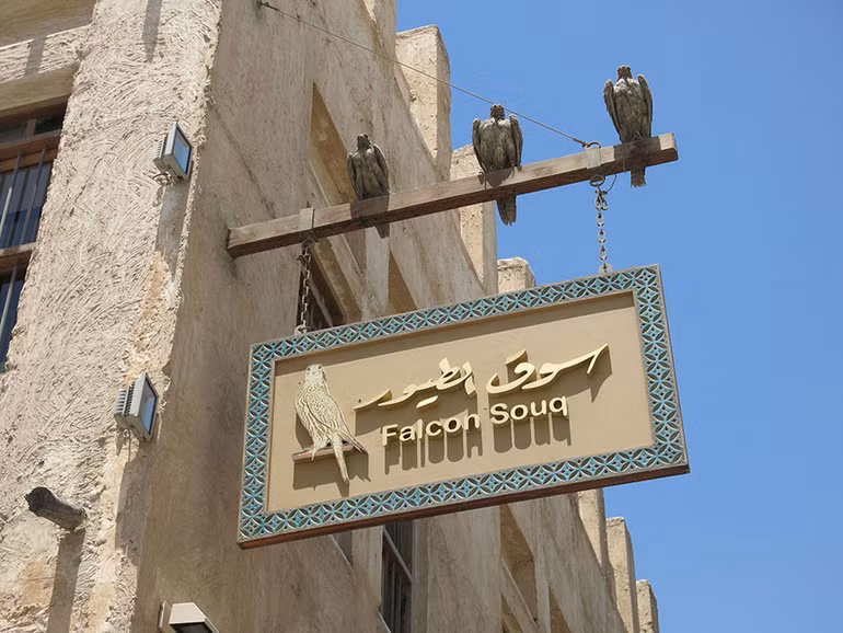 Huấn luyện chim săn mồi đã được nâng lên thành nghệ thuật, sau hàng nghìn năm xuất hiện trên thế giới. Và nghệ thuật có truyền thống lịch sử lâu đời này đã được UNESCO công nhận là Di sản văn hóa phi vật thể, như một báu vật cần gìn giữ và trao truyền cho muôn đời hậu thế. Phụ kiện huấn luyện chim được bày biện bắt mắt, đa dạng về cả chủng loại lẫn giá tiền trong mỗi cửa hàng ở Souq Waqif. Tất cả đều được làm bằng da bò nguyên tấm chất lượng cao, một số làm bằng da cá sấu theo những đơn hàng đặt riêng. Những chiếc găng tay với cấu tạo từ hai đến ba lớp da để thao tác và huấn luyện chim trên thực địa. Những chiếc mũ trùm được chế tác tỉ mỉ và cầu kỳ bảo đảm an toàn cho mắt chim nhưng cũng rất thoải mái khi sử dụng. Những dây da chân tạo sự vừa vặn và thoải mái, không gây tổn thương hoặc rụng lông gồm dây đai chân, dây nối và bộ phận chống xoắn. Mồi giả là phụ kiện bằng da bò mô phỏng con mồi để tập cho chim kỹ năng săn bắt. Còi huấn luyện giúp chim nhận lệnh của chủ nhân… Để có thể bắt tay vào hành trình huấn luyện một chú chim, mỗi chủ nhân tương lai phải mua sắm tối thiểu từng đó sản phẩm.