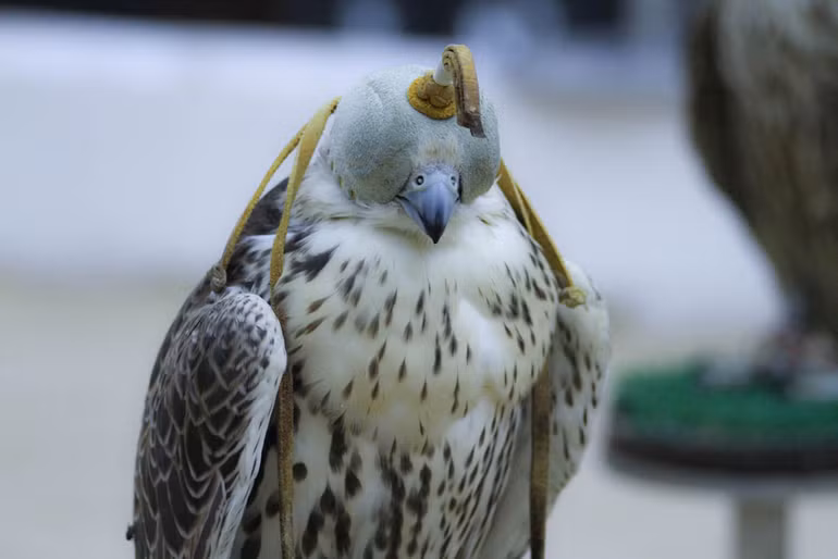 Chú chim ưng với chiếc mũ trùm đầu bằng da đặc trưng