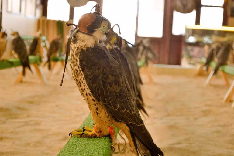 Trên bức tường của một cửa hàng, tôi bắt gặp một câu tagline tiếng Anh khá thú vị: “Falcon is not animal or bird. Falcon is a falcon”. Có vẻ như định vị đẳng cấp quý tộc cho loài chim dũng mãnh này là một nét văn hóa đậm đặc chất Trung Đông. Nơi giới nhà giàu coi chúng như thú cưng. Nơi rạp mình trên lưng giống ngựa Arab thuần chủng phóng như bay, với chú chim ưng kiêu hùng đậu trên vai là hình ảnh quen thuộc của những giới quý tộc trong những chuyến đi săn đẳng cấp.