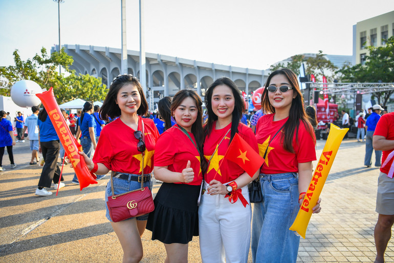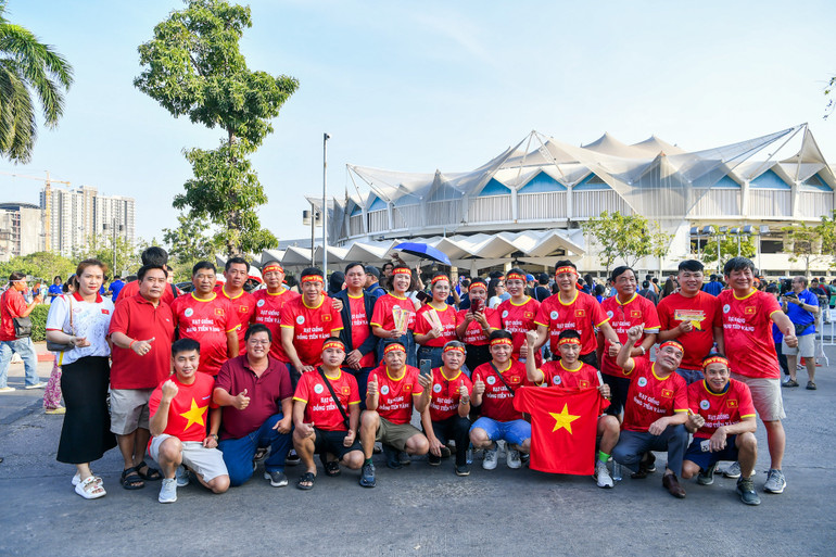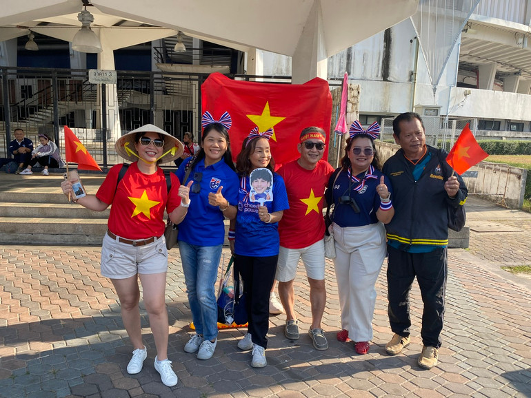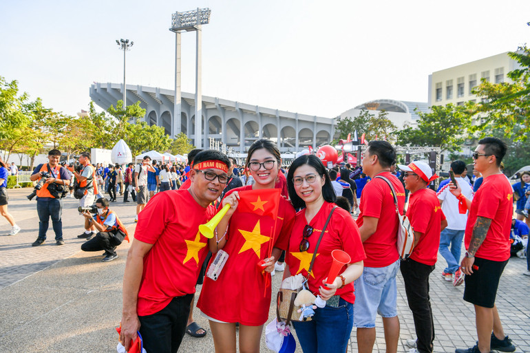 | Chiều 5/1, hàng trăm khán giả Việt Nam đã có mặt trước sân Rajamangala để chuẩn bị cổ vũ cho các chiến binh sao vàng trong trận Chung kết lượt về ASEAN CUP 2024. |