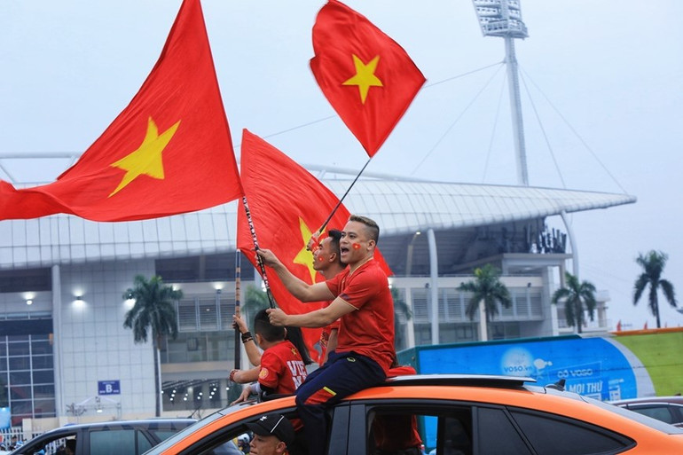 Khán giả đến sân cổ vũ cho đội tuyển Việt Nam.