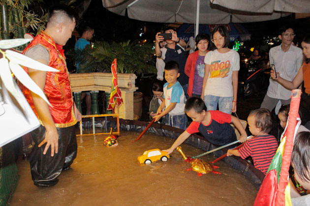 Các em nhỏ thích thú với múa rối nước của Đậu Homemade.