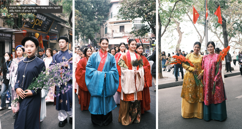 Sự xuất hiện của các bạn trẻ trong những bộ cổ phục Việt vừa rực rỡ, vừa độc đáo đã biến không gian phố đi bộ Hồ Gươm thành một "sân khấu văn hóa sống”, nhiều du khách quốc tế đã phải dừng chân để chiêm ngưỡng những tác phẩm nghệ thuật từ trang phục truyền thống Việt Nam.