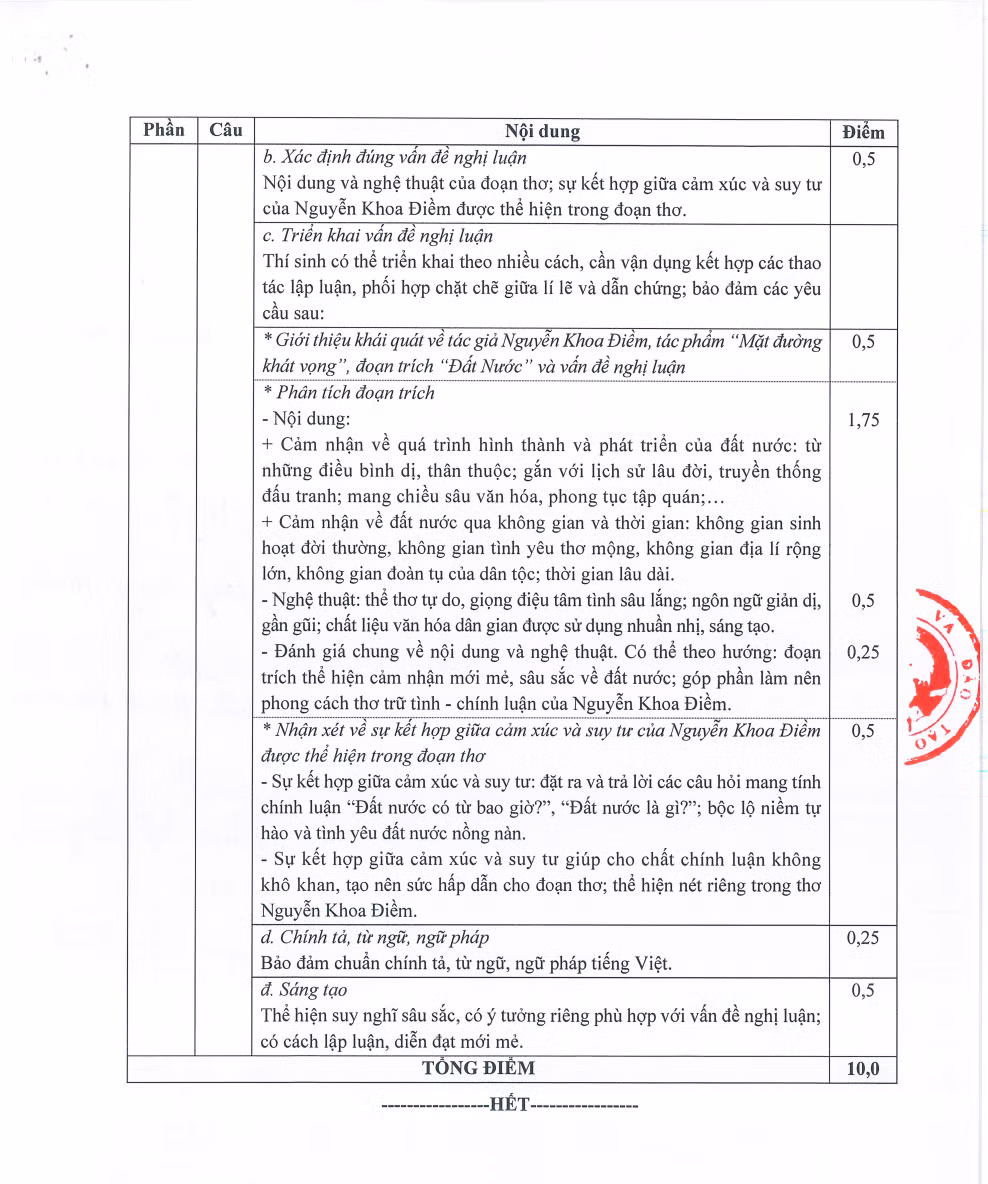 Đáp án, thang điểm, mời xem tại đây