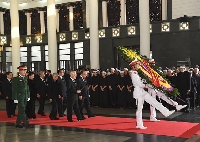 Đoàn Ban Chấp hành Trung ương Đảng Cộng sản Việt Nam do đồng chí Nguyễn Phú Trọng, Tổng Bí thư Ban Chấp hành Trung ương Đảng làm Trưởng đoàn, viếng đồng chí Đỗ Mười.