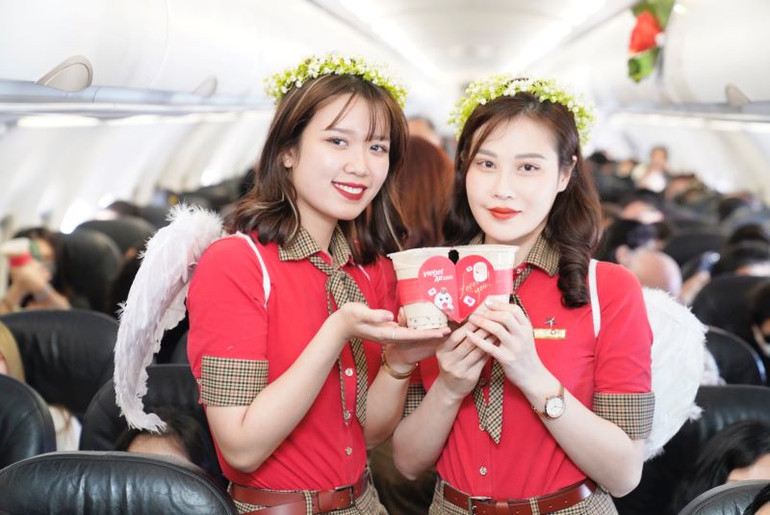 Trên chuyến bay mang số hiệu VJ773 từ Hà Nội đến Nha Trang ngay dịp lễ Tình yêu Valentine lãng mạn, phi hành đoàn đã đặc biệt tổ chức một lễ kỷ niệm ngày cưới cho cặp đôi khách hàng chọn bay cùng Vietjet với 999 bông hồng tượng trưng cho tình yêu vĩnh cửu.