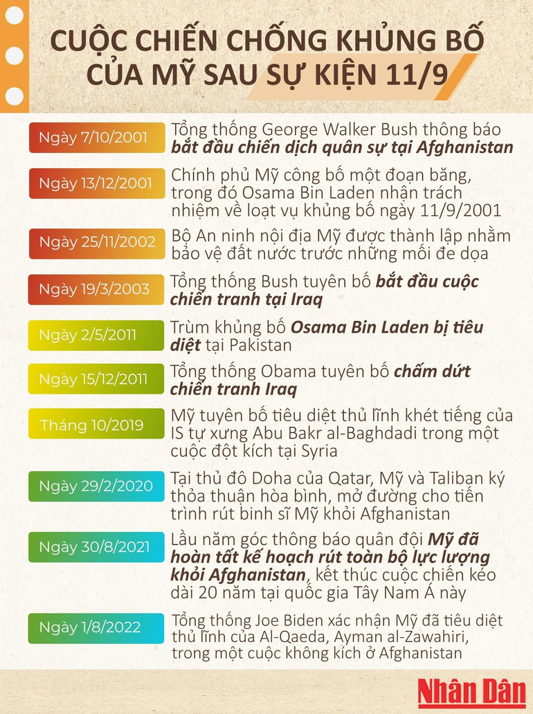 Sự kiện 11/9 đã dẫn đến những thay đổi lớn đối với nước Mỹ, trong đó bước ngoặt lớn nhất chính là việc Mỹ quyết định phát động cuộc chiến chống khủng bố toàn cầu.